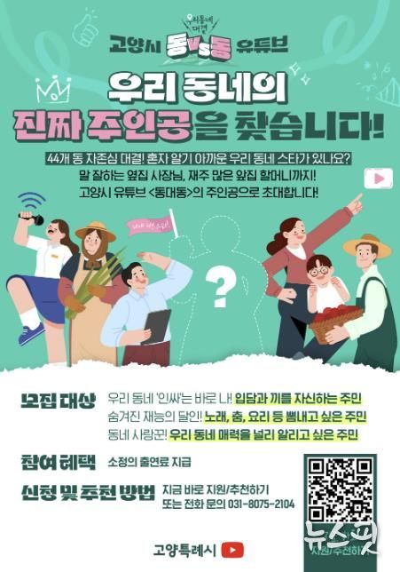 (뉴스핏 = 김호 기자) 고양특례시가 44개 동 주민들이 직접 주인공으로 참여하는 신규 유튜브 예능 콘텐츠 ‘동대동(우리 동네 대결)’의 본격적인 제작을 앞두고 ‘우리 동네 대표 선수’를 모집한다고 9일 밝혔다.