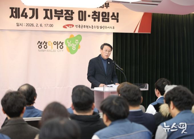 (뉴스핏 = 김호 기자) 남양주시는 6일 시청 여유당에서 전국공무원노동조합 남양주시지부가 제4기 지부장 이·취임식을 열었다고 9일 밝혔다.