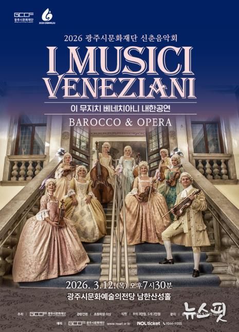 (뉴스핏 = 김수진 기자) (재)광주시문화재단은 2026년 신춘음악회로 이탈리아 베네치아니를 기반으로 활동해온 바로크앙상블 〈이 무지치 베네치아니(I Musici Veneziani) 내한공연 – Barocco & Opera〉를 개최한다. 이번 공연은 베네치아 황금시대의 음악과 문화를 무대 위에 생생히 재현하며, 관객들에게 클래식을 통한 특별한 시간여행을 선사할 예정이다.