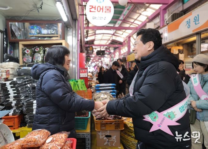 (뉴스핏 = 김수진 기자) 이상일 용인특례시장은 10일 설을 앞두고 용인중앙시장에서 장을 보며 상인과 시민에게 명절 인사를 하고, 수지구 성복동에 있는 장애인 복지시설 ‘해오름의 집’을 위문했다.