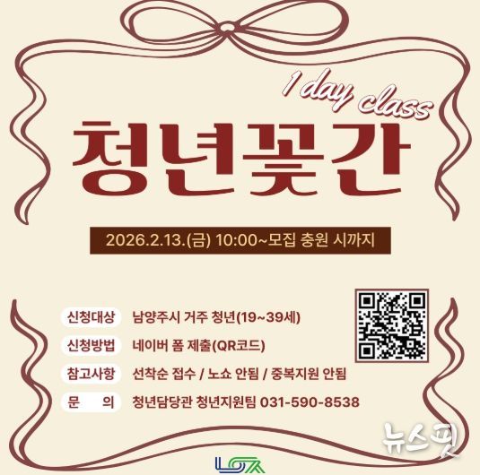 (뉴스핏 = 김호 기자) 남양주시는 청년들의 문화적 욕구를 충족하고 소통의 기회를 제공하기 위해 2월부터 ‘2026년 청년꽃간 문화 프로그램’을 본격 운영한다고 10일 밝혔다.