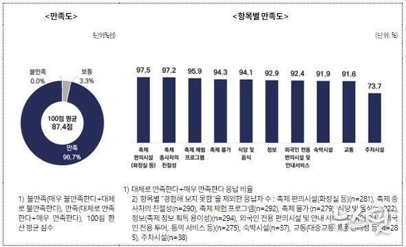 실제 외국인 축제 만족도는 평균 87.4점으로 나타났으며, 응답자의 98%는 ‘타인에게 추천할 의향이 있다’고 답했다. 2026년 재방문 의향 역시 80.7%로 조사돼, 일회성 방문이 아닌 반복 방문 가능성도 확인됐다.