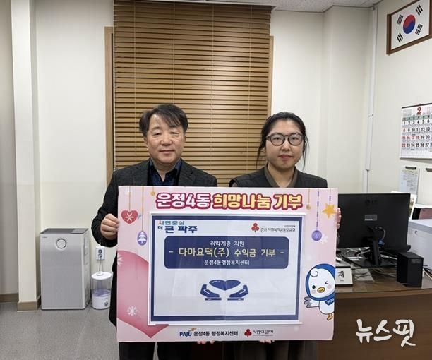 (뉴스핏 = 김호 기자) 파주시 운정4동은 설 명절을 맞아 지난 10일 파주시 관내 중소기업인 다마요팩㈜으로부터 취약계층을 위한 이웃 돕기 성금을 기탁 받았다고 밝혔다.