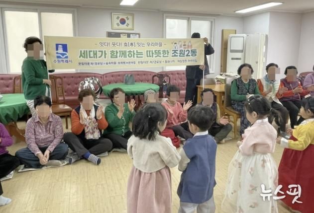 (뉴스핏 = 김호 기자) 수원시 장안구 조원2동은 지난 11일, 설 명절을 맞아 관내 경로당에 어린이집 원아들이 방문하는 세대공감 교류 행사를 진행했다.