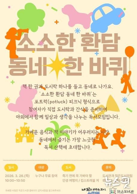 소소한 환담 참여 신청은 작은도서관 누리집 또는 공‧사립 작은도서관 방문 및 전화로 가능하다. 모임 도서는 참여자가 자율적으로 준비하면 되며 참가비는 무료다.