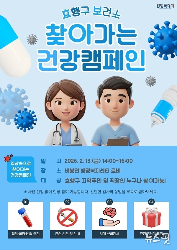 이번 캠페인은 효행구청 체제 출범에 따라 개편된 효행구보건소의 역할과 기능을 주민들에게 알리고, 주민들이 생활권 내에서 손쉽게 건강 상태를 점검하며 보건소의 다양한 건강 증진 서비스를 안내받을 수 있게 하도록 추진된다.