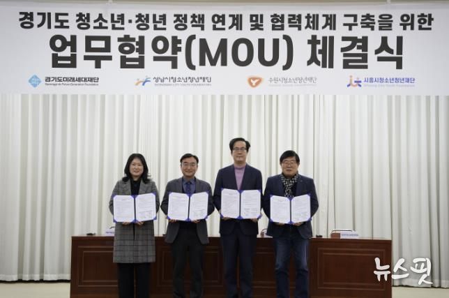 (뉴스핏 = 김수진 기자) (재)시흥시청소년청년재단은 지난 12일 경기도청 옛청사 신관 4층 대회의실에서 경기도미래세대재단, 수원시청소년청년재단, 성남시청소년청년재단과 함께 ‘청소년ㆍ청년 정책 연계 및 협력체계 구축’을 위한 업무협약을 체결했다.