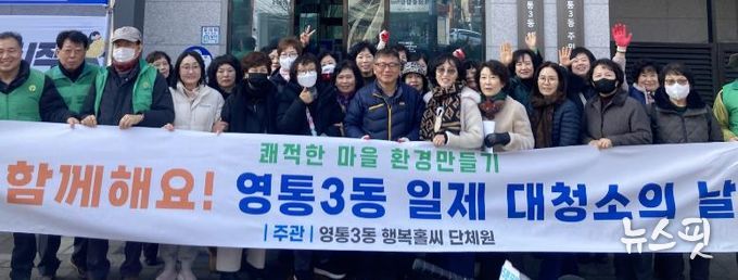 (뉴스핏 = 김호 기자) 수원시 영통구 영통3동 행정복지센터는 지난 12일 설 명절을 앞두고 지역 환경 정비와 깨끗한 마을 조성을 위해 통장협의회와 함께 ‘설맞이 일제 대청소의 날’을 실시했다.