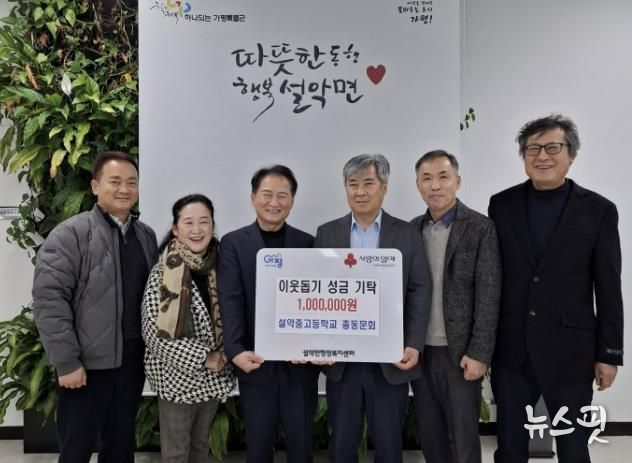 이동철 설악면장은 “오늘 자리해 주신 설악중·고등학교 총동문회 회장님을 비롯한 임원들께서 소중한 기부를 실천해 주셔서 감사드린다”며 “기탁해 주신 성금은 꼭 필요한 이웃들을 위해 소중하게 사용하겠다”고 전했다.