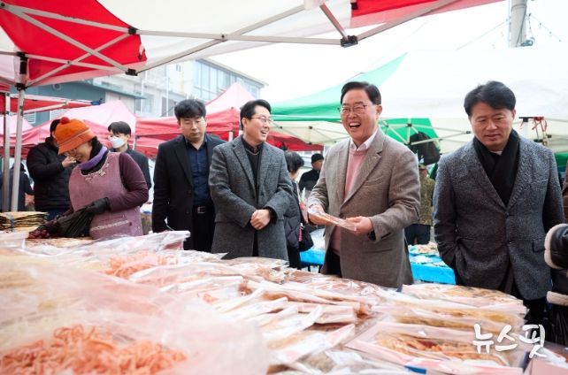 전통시장에서는 명절 장보기로 분주한 상인과 시민들을 만나 지역경제 상황을 점검하고 애로사항을 청취했다.