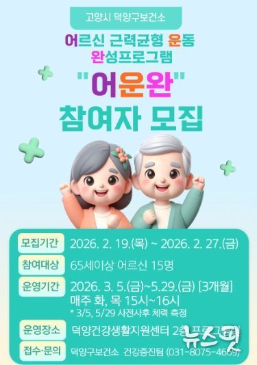 (뉴스핏 = 김수진 기자) 고양특례시 덕양구보건소가 어르신 대상 낙상 및 근감소증 예방을 위해 2026년 신규사업인 ‘어·운·완’ 프로그램을 운영한다.
