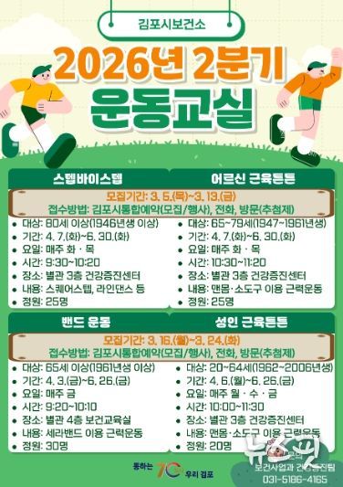 (뉴스핏 = 김호 기자) 김포시는 2026년 4월부터 6월까지 운영되는 2분기 운동 프로그램 참여자를 3월 5일부터 24일까지 모집한다고 20일 밝혔다.