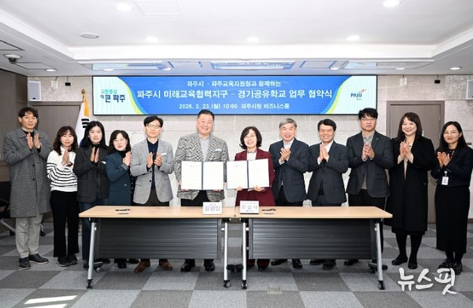 (뉴스핏 = 김수진 기자) 경기도파주교육지원청은 2026년 2월 23일에 파주시와 ‘파주시 미래교육협력지구–경기공유학교’ 업무협약을 체결했다.