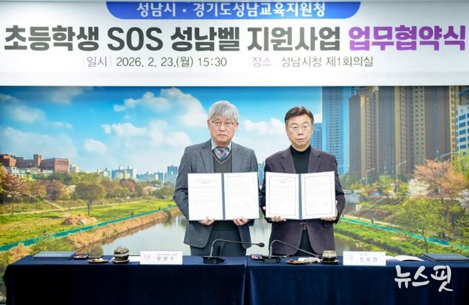 (뉴스핏 = 김호 기자) 성남시는 23일 성남교육지원청과 ‘초등학생 대상 긴급 구조 요청(SOS) 성남벨 지원 사업’ 추진을 위한 업무 협약을 했다.
