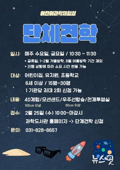 (뉴스핏 = 김호 기자) 의정부과학도서관은 어린이집, 유치원 및 초등학교를 대상으로 3월부터 어린이과학체험실 단체 견학 프로그램을 운영한다고 24일 밝혔다.