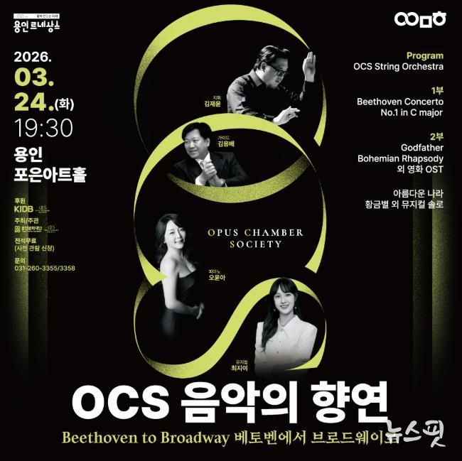 (뉴스핏 = 김수진 기자) 용인문화재단은 오는 3월 24일 용인포은아트홀에서 오퍼스 체임버 소사이어티(Opus Chamber Society, 이하 OCS)와 공동으로 'OCS 음악의 향연, Beethoven to Broadway' 공연을 개최한다.