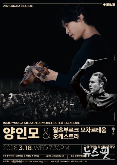 (뉴스핏 = 김수진 기자) (재)고양문화재단은 2026시즌 기획공연 '2026 아람 클래식 – 양인모 & 잘츠부르크 모차르테움 오케스트라'를 오는 3월 18일 오후 7시 30분 고양아람누리 아람음악당에서 개최한다.