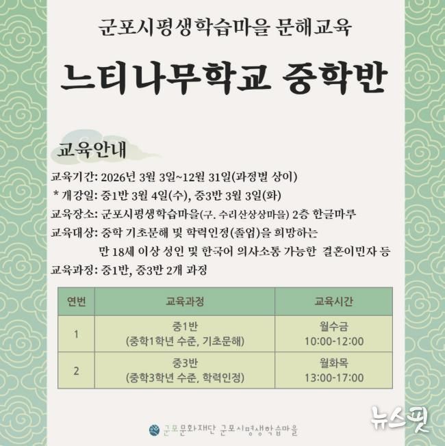 (뉴스핏 = 김수진 기자) 군포문화재단 군포시평생학습마을은 지난 3일 성인 문해교육 프로그램 ‘느티나무학교’를 개강했다고 밝혔다.
