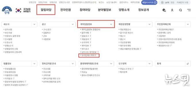 (뉴스핏 = 김호 기자) 양평군은 지역경제 활성화와 청년기업 및 신생(창업)기업의 공공시장 참여 확대를 위해 양평군청 누리집에 ‘우리업체 소개하기’ 게시판을 신설했다고 밝혔다.