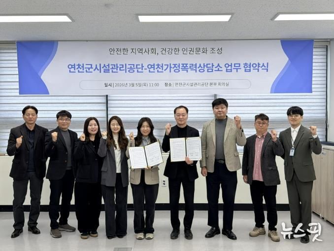 (뉴스핏 = 김호 기자) 연천군시설관리공단은 가정폭력과 이로 인해 파생되는 아동학대 등 가정 내 폭력을 예방하고 피해자의 신속한 보호와 일상 회복을 실질적으로 지원하기 위해, 5일 연천가정폭력상담소와 '지역사회 폭력 예방 및 인권 증진을 위한 업무협약'을 체결했다고 밝혔다.