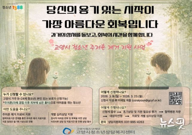 (뉴스핏 = 김호 기자) 고양시청소년재단 고양시청소년상담복지센터는 자살·자해 흔적(주저흔)으로 인해 심리적 위축과 사회생활의 어려움을 겪고 있는 청소년을 지원하기 위해 ‘주저흔(자해 흔적) 제거 지원 사업’을 추진한다고 6일 밝혔다.