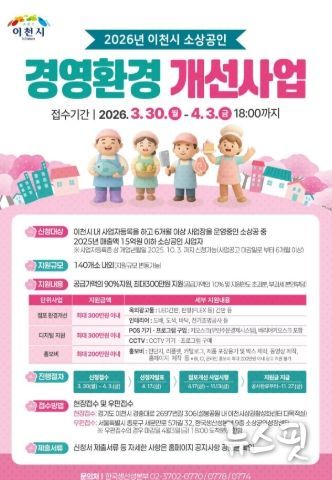 (뉴스핏 = 김수진 기자) 이천시는 관내 소상공인의 사업 경쟁력을 강화하기 위해 2026년 소상공인 경영환경개선사업을 추진한다고 6일 밝혔다. 한국생산성본부와 협약을 체결하여 2024년에 시작한 이번 사업은 올해 세 번째를 맞이했다.