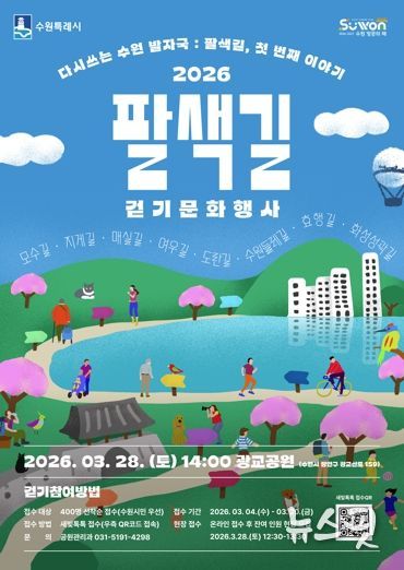 (뉴스핏 = 김호 기자) 수원특례시가 ‘2026 팔색길 걷기 문화행사’에 참여할 시민 400명을 3월 20일까지 선착순으로 모집한다.
