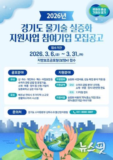 (뉴스핏 = 김수진 기자) 경기도가 ‘2026년 경기도 물기술 실증화 지원사업’ 참여 기업을 공개 모집한다.