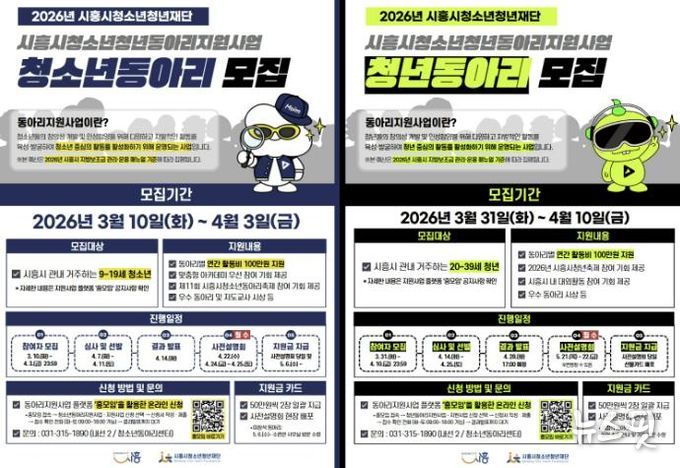 (뉴스핏 = 김수진 기자) 시흥시와 시흥시청소년청년재단은 지역 청소년과 청년의 자율적인 동아리 활동을 지원하고 건강한 문화 형성을 위해 ‘2026년 시흥시 청소년ㆍ청년 동아리 지원사업’에 참여할 동아리 670개를 모집한다고 10일 밝혔다.