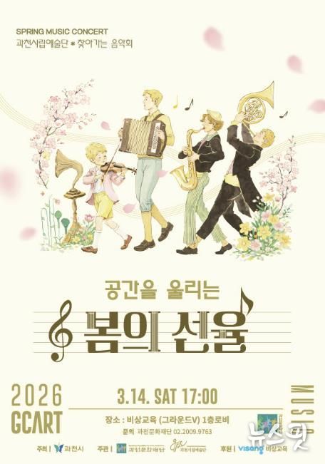 과천시립예술단은 오는 14일 오후 5시, 비상교육 사옥 로비에서 시민들을 위한 ‘찾아가는 음악회 - 공간을 울리는 봄의 선율’을 개최한다고 10일 밝혔다. 이번 공연은 기업 공간을 공연장으로 활용해 시민들이 보다 가까운 곳에서 음악을 즐길 수 있도록 마련됐다.
