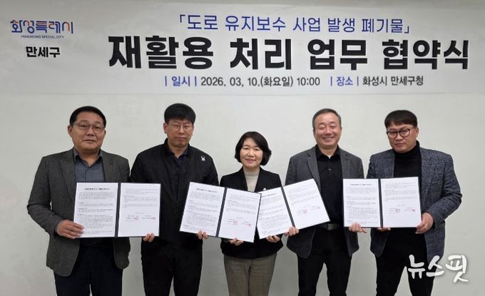 (뉴스핏 = 김수진 기자) 화성특례시 만세구가 도로 유지보수 과정에서 발생하는 폐기물을 효율적으로 처리하고 자원 재활용을 확대하기 위해 관내 아스콘 생산 업체와 ‘폐아스콘 재활용 처리 협약’을 체결했다.
