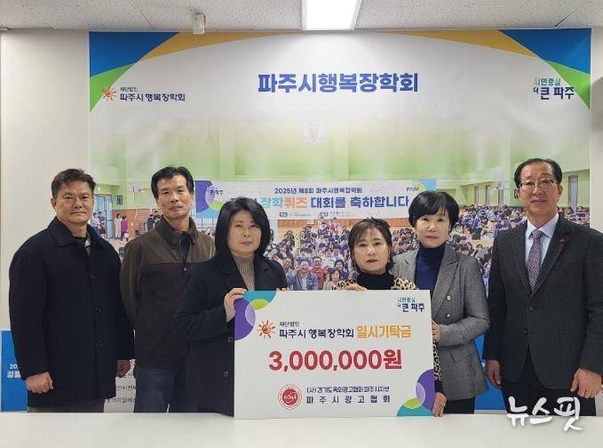 파주시광고협회는 지역사회의 일원으로서 미래 인재 육성에 보탬이 되고자 이번 기탁을 마련했으며, 전달된 기탁금 300만 원은 파주시 관내 학생들을 위한 장학사업에 사용될 예정이다.