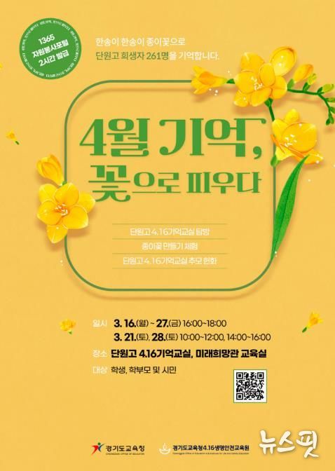 (뉴스핏 = 김수진 기자) 경기도교육청4.16생명안전교육원이 '4월 기억, 꽃으로 피우다’프로그램 참가자를 모집한다.