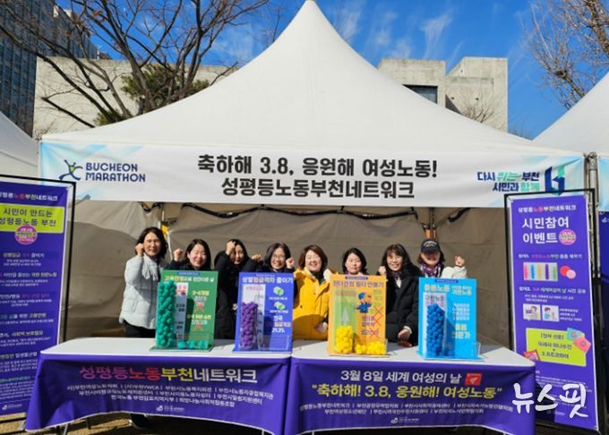 특히 지난 8일, ‘2026 부천국제 10km 로드레이스’의 부대행사가 열린 부천시청 잔디광장에서 ‘성평등노동부천네트워크’는 성평등한 노동환경 조성을 주제로 ‘폼폼 투표’ 체험 이벤트 부스를 운영했다. 이날 행사에는 대회 참가자와 시민 1,300여 명이 방문하여 주요 노동 이슈에 대해 함께 공감하는 등 인식개선에 뜻을 모았다. 특히 많은 시민들이 ‘성별임금격차 해소’, ‘고용안정’의 필요성에 가장 많은 공감을 표했다.
