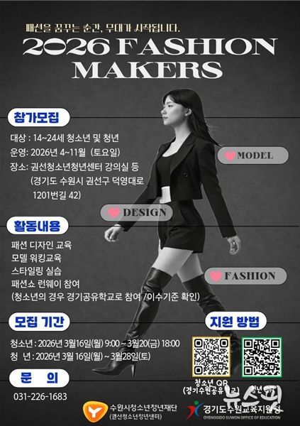 (뉴스핏 = 김호 기자) 수원시청소년청년재단 권선청소년청년센터는 패션 분야 진로에 관심 있는 청소년과 청년을 대상으로 ‘패션메이커스(Fashion Makers)’ 프로그램 참가자를 모집한다.