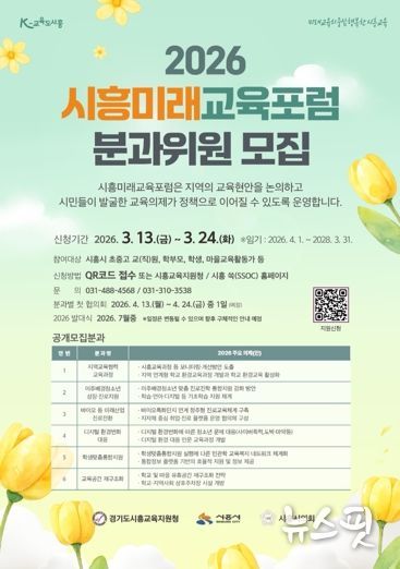 (뉴스핏 = 김수진 기자) 시흥시와 경기도시흥교육지원청, 시흥시의회는 지역 교육공동체 간 소통과 협력을 통해 교육 의제를 발굴하고 정책으로 연계하기 위해 운영하는 ‘2026 시흥미래교육포럼’의 분과위원을 오는 24일까지 공개 모집한다고 15일 밝혔다.