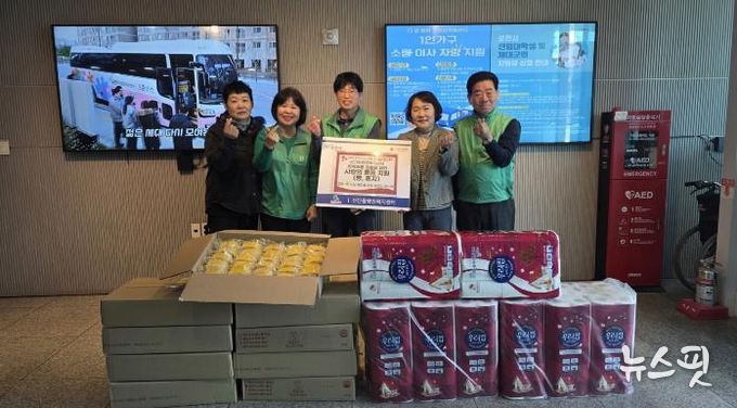 (뉴스핏 = 김호 기자) 직장새마을운동 포천시협의회는 지역 취약계층 지원을 위해 빵 300개와 화장지 250개를 선단동 행정복지센터에 기탁했다.