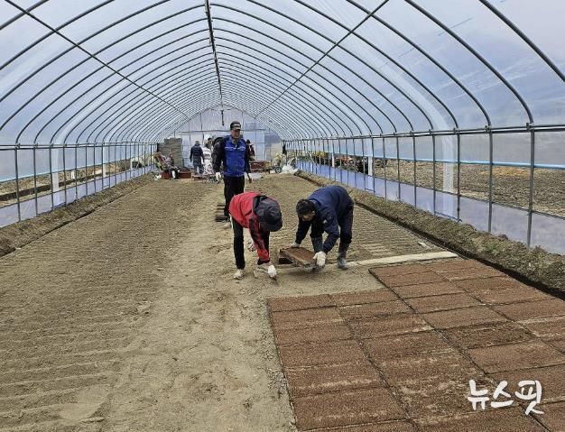 (뉴스핏 = 김호 기자) 양평군은 15일 지평면 곡수리 전경복 농가에서 올해 첫 못자리를 설치하며 본격적인 영농철의 시작을 알렸다고 밝혔다.
