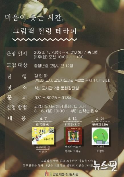 (뉴스핏 = 김호 기자) 고양특례시 식사도서관은 오는 4월 7일부터 공공도서관 독서문화 프로그램 ‘마음이 웃는 시간, 그림책 힐링 테라피’을 운영한다.