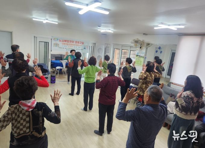 (뉴스핏 = 김수진 기자) 이천시는 마을로 찾아가는 노쇠예방관리 운동교실 ‘헛둘헛둘 88하게 백세누리’를 설성면 마을회관에서 운영하고 있다.