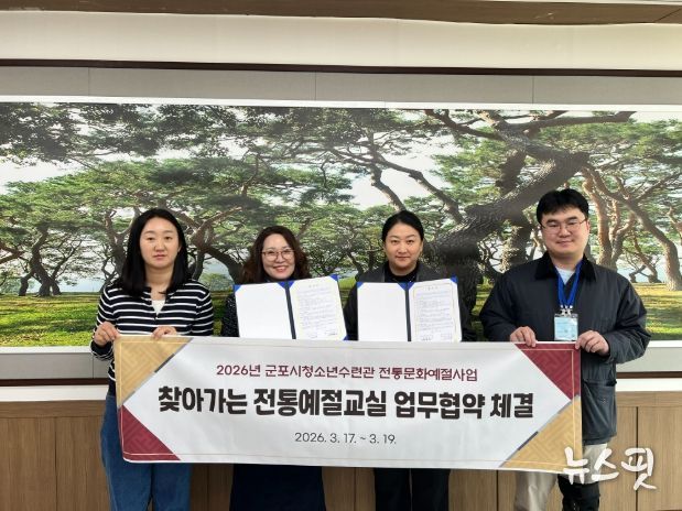(뉴스핏 = 김수진 기자) (재)군포시청소년재단 군포시청소년수련관은 17일부터 19일까지 관내 초등학교 8개교와 '찾아가는 전통예절교실' 운영을 위한 업무협약(MOU)을 진행하고 있다.