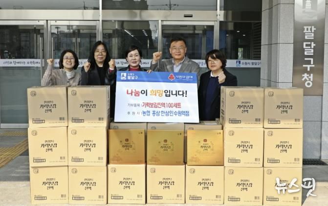(뉴스핏 = 김호 기자) 수원시 팔달구는 지난 17일, 농협 홍삼 한삼인 수원역점으로부터 기부받은 기력보감 진액 100세트를 관내 취약계층에 전달하며 건강한 나눔 문화를 실천했다.