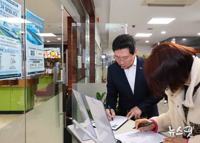 (뉴스핏 = 김수진 기자) 이상일 용인특례시장은 18일 오전 수지구 성복동행정복지센터를 찾아 경기남부광역철도 등 철도망 구축을 위한 서명운동에 참여했다.