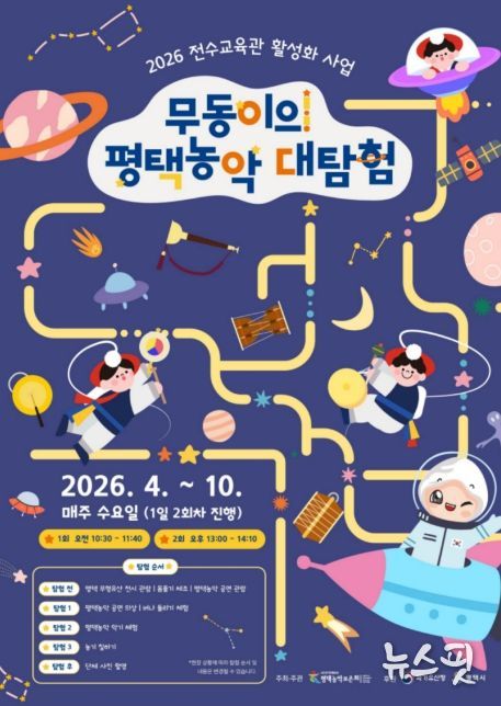 (뉴스핏 = 김수진 기자) 평택시는 오는 4월 29일부터 10월 28일까지 2026년 전수교육관 활성화 지원사업 ‘무동이의 평택농악 대탐험’을 평택무형유산 전수교육관에서 매주 수요일, 1일 2회차 총 38회를 운영한다고 밝혔다.
