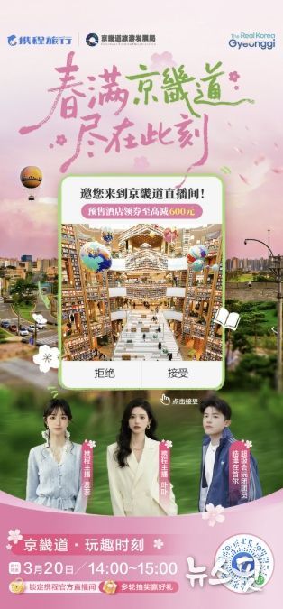 중국인 쇼호스트와 여행 인플루언서가 경기도에서 즐길 수 있는 트렌디 문화, 놀이시설, K-푸드, 힐링 등을 홍보하고, 도내 숙박시설, 관광지 입장권, 일일투어, 그룹투어 등 100여종의 관광체험상품 판매 및 할인 이벤트 등도 소개한다.
