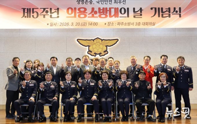 (뉴스핏 = 김수진 기자) 파주소방서는 2026년 3월 20일 오후 2시 파주소방서 3층 대회의실에서 '제5주년 의용소방대의 날' 기념식을 개최했다. 이번 행사는 지역 사회를 위해 자발적으로 소방 활동에 헌신해 온 의용소방대원들의 봉사와 희생정신을 기리기 위해 마련됐다. 소방공무원, 의용소방대원, 지역 내외빈 등 약 180여 명이 참석했다.
