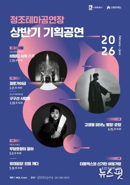 (뉴스핏 = 김수진 기자) 수원문화재단은 오는 4월부터 6월까지 정조테마공연장에서 전통예술의 현대적 확장을 주제로 한 기획공연 4편을 선보인다.