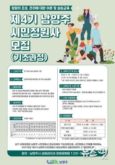 (뉴스핏 = 김호 기자) 남양주시는 ‘제4기 남양주시민정원사 양성교육(기초과정)’ 참여자를 모집한다고 24일 밝혔다.
