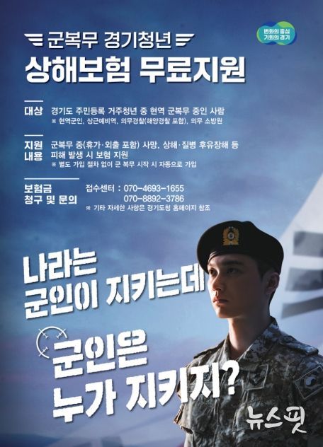 (뉴스핏 = 김수진 기자) 경기도가 군복무 중 발생할 수 있는 사고로부터 청년을 보호하기 위해 ‘군복무 경기청년 상해보험’ 지원 사업을 올해도 이어간다.