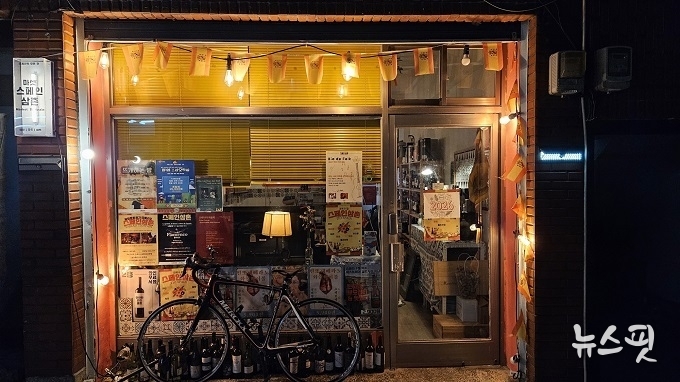 골목에 위치한 작은 가게에는 스페인 국기 가랜드와 FC바르셀로나 팀기, 각종 모임과 공연 포스터, 감각적인 유화작품들이 여기저기 걸려있다. 제멋대로인 듯 일종의 규칙과 문화를 품고 있는 공간을 보고 있노라면 주인장의 정체가 궁금해진다.